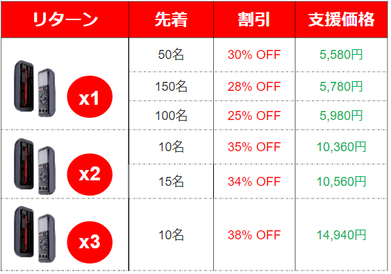 ※想定を上回る皆様からご支援を頂き、量産体制を更に充実させることができた場合、一般販売価格が予定価格を下回る可能性がございます。