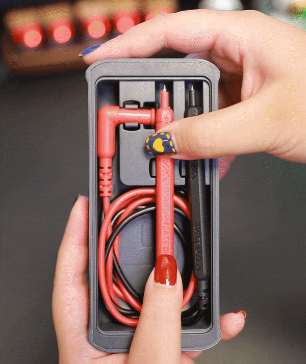 普通のマルチメーターって、付属のテストリードを収納する場所がなかったり、収納できてもケーブルが絡まりやすかったりしませんか?