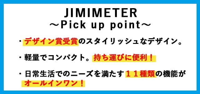 ”JIMIMETER”なら、実用新案登録済の本体と収納ケース一体型デザインを採用しているため収納時も美しく、それでいて機能的です!