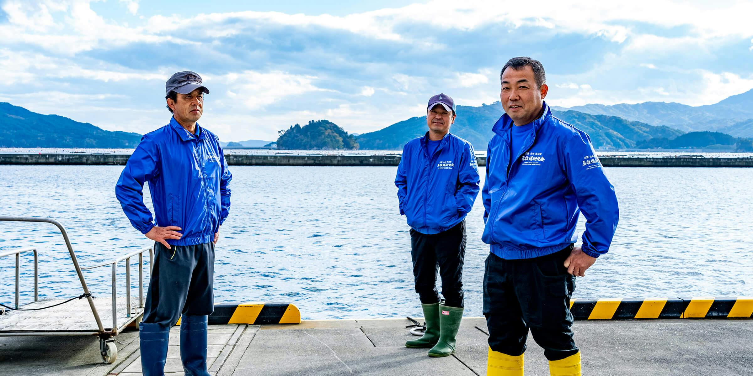 岩手県三陸、太平洋に向けて北東を向いた山田湾。その北部にあるのが大沢地区。湾を囲む4地区のなかで若い漁師がもっとも多く活気ある浜。そこで、どうすればより良い牡蠣をつくることができるか日々研究している私たち3名の漁師が「真牡蠣研究会」です。
