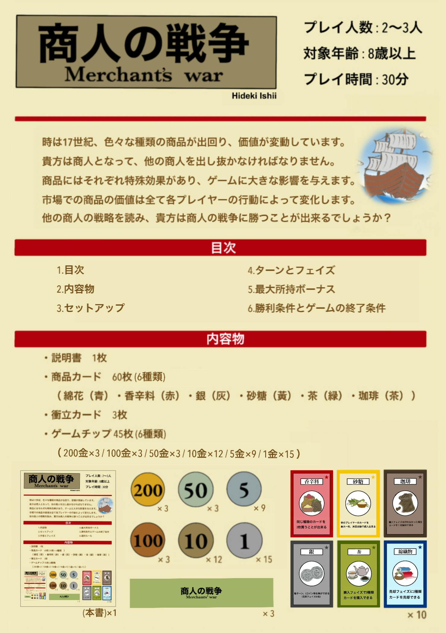 17世紀のヨーロッパの商人達の商業抗争をテーマにしたゲームです。