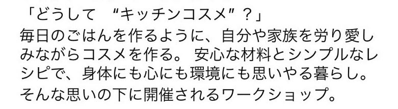 選べるワークショップの、キッチンコスメの詳細が抜けてしまっていたので、補足ですm(_ _)m