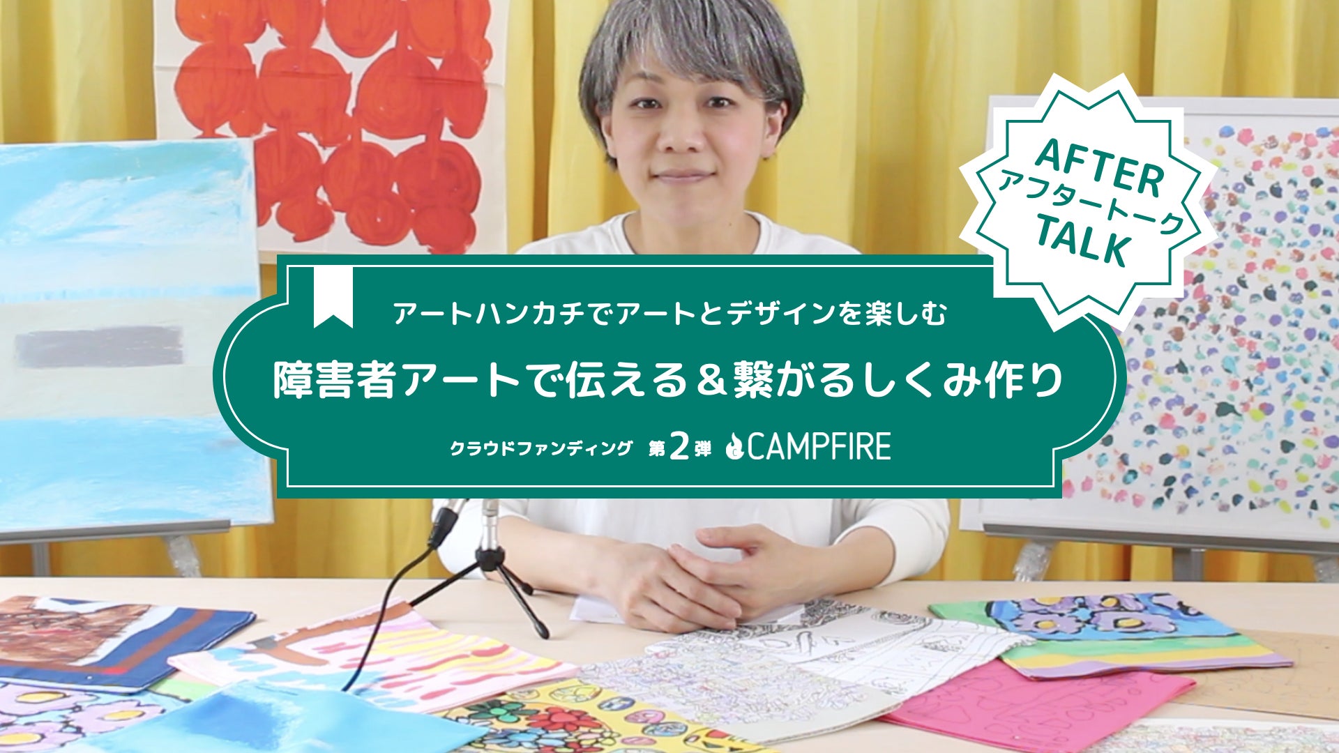 ダブディビ・デザインの第二弾クラウドファンディング、【アートハンカチでアートとデザインを楽しむ★障害者アートで伝える&繋がるしくみ作り】のページをご覧いただき、ありがとうございます!皆様の応援のおかげで、目標金額を達成いたしました!!ありがとうございます♪♪クラファンページでは、プロジェクトの紹介動画も公開しておりますが、撮影時のアフタートークバージョンも公開いたしました♪こちらは台本なし!で撮影したので、素の私に近いかなと思います^_^;是非、この動画もみていただいて、ダブディビ・デザインがどんな思いで活動しているか、知っていただければ嬉しいです!