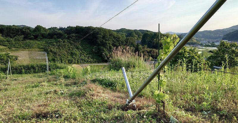 半ば耕作放棄地であった畑を借りることができ、できるなら無農薬栽培を行いたいと、順番が違うと呆れられながら、棚づくりを後回しにして欧州系の葡萄の試験栽培を行いました。