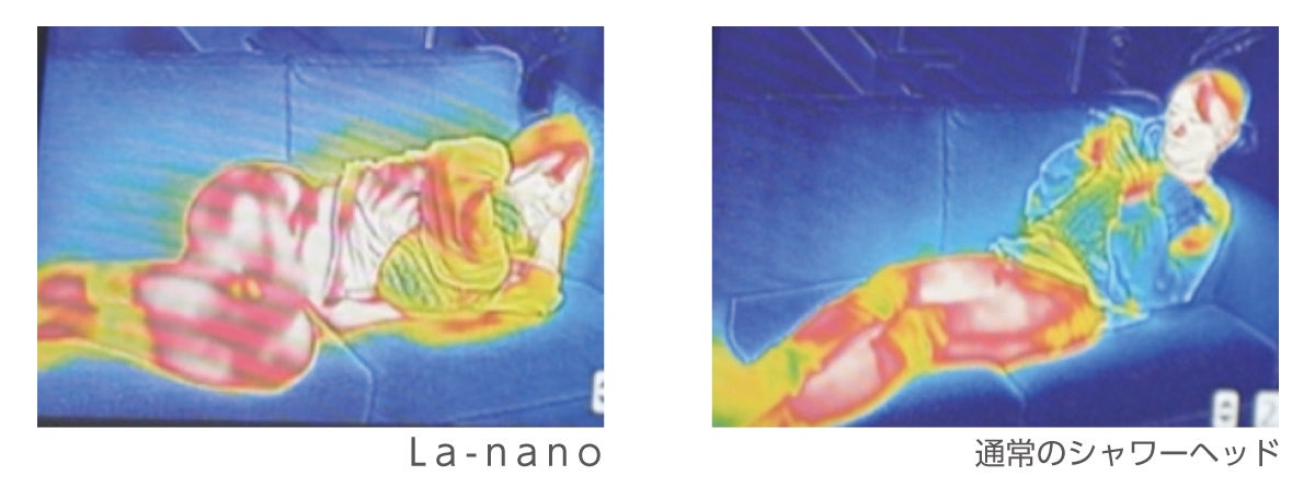 被験者に通常のシャワーヘッドとLa-nanoで、それぞれ5分ずつシャワーを浴びてもらい、