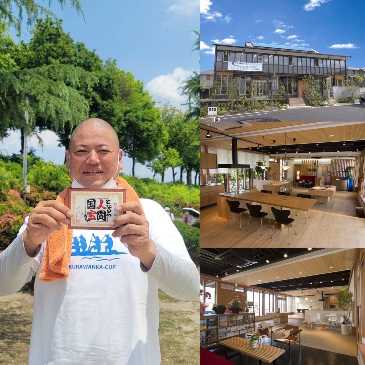 左)2022年7月本人 右)会社ショールーム外観&内観