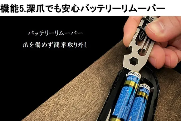 爪を傷めずに電池を取り外せます