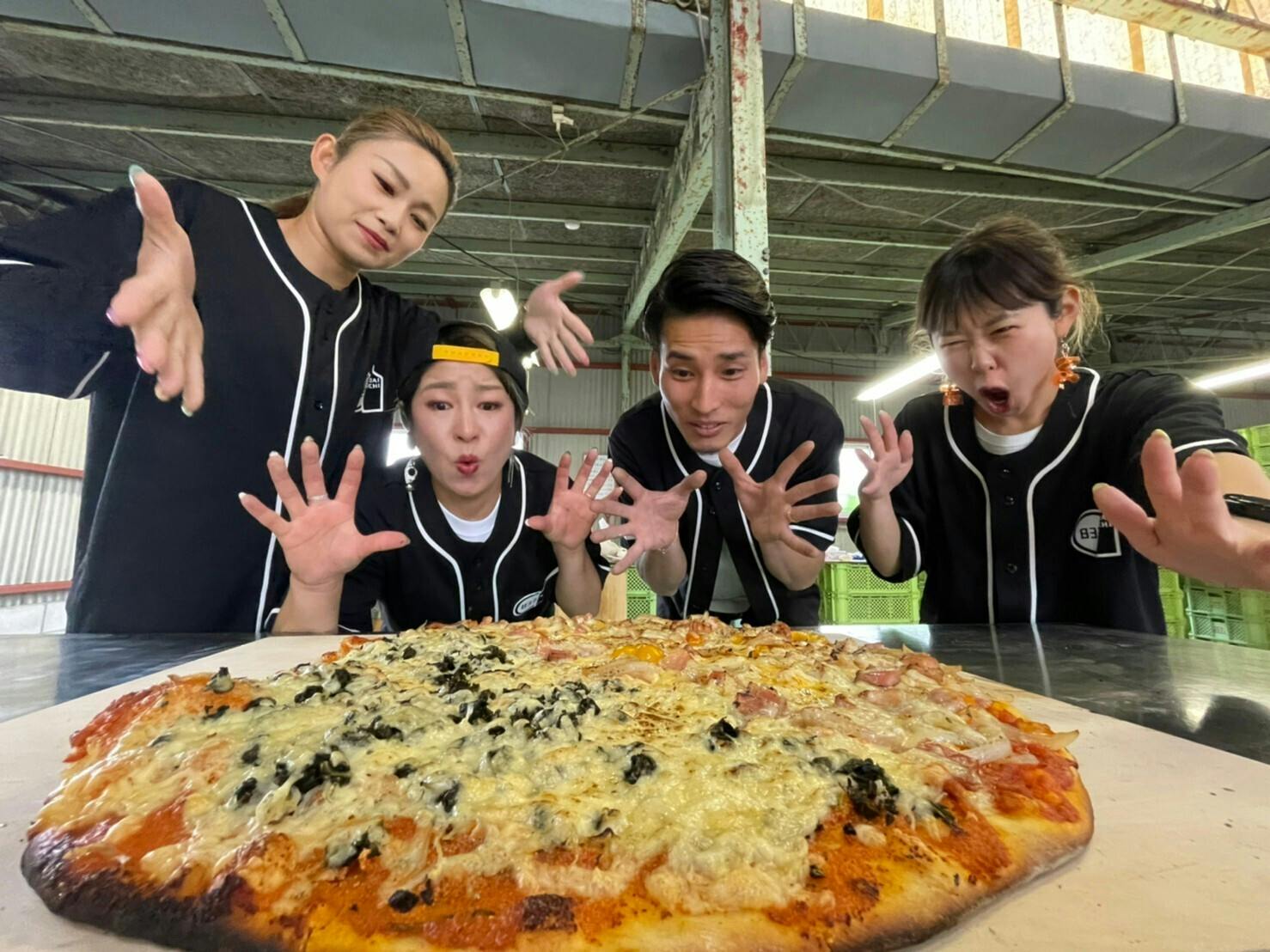 900度まで温度が上がる巨大窯に3分ほど入れるとアツアツ・モチモチ・パリパリのピザが完成。