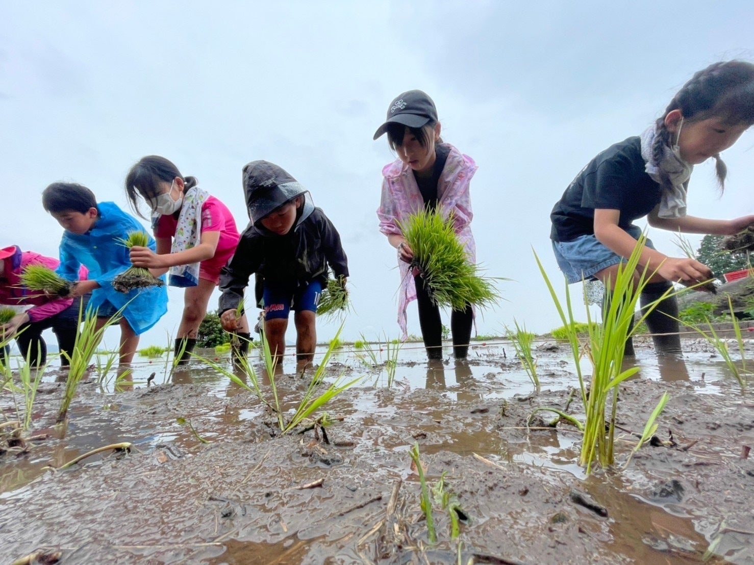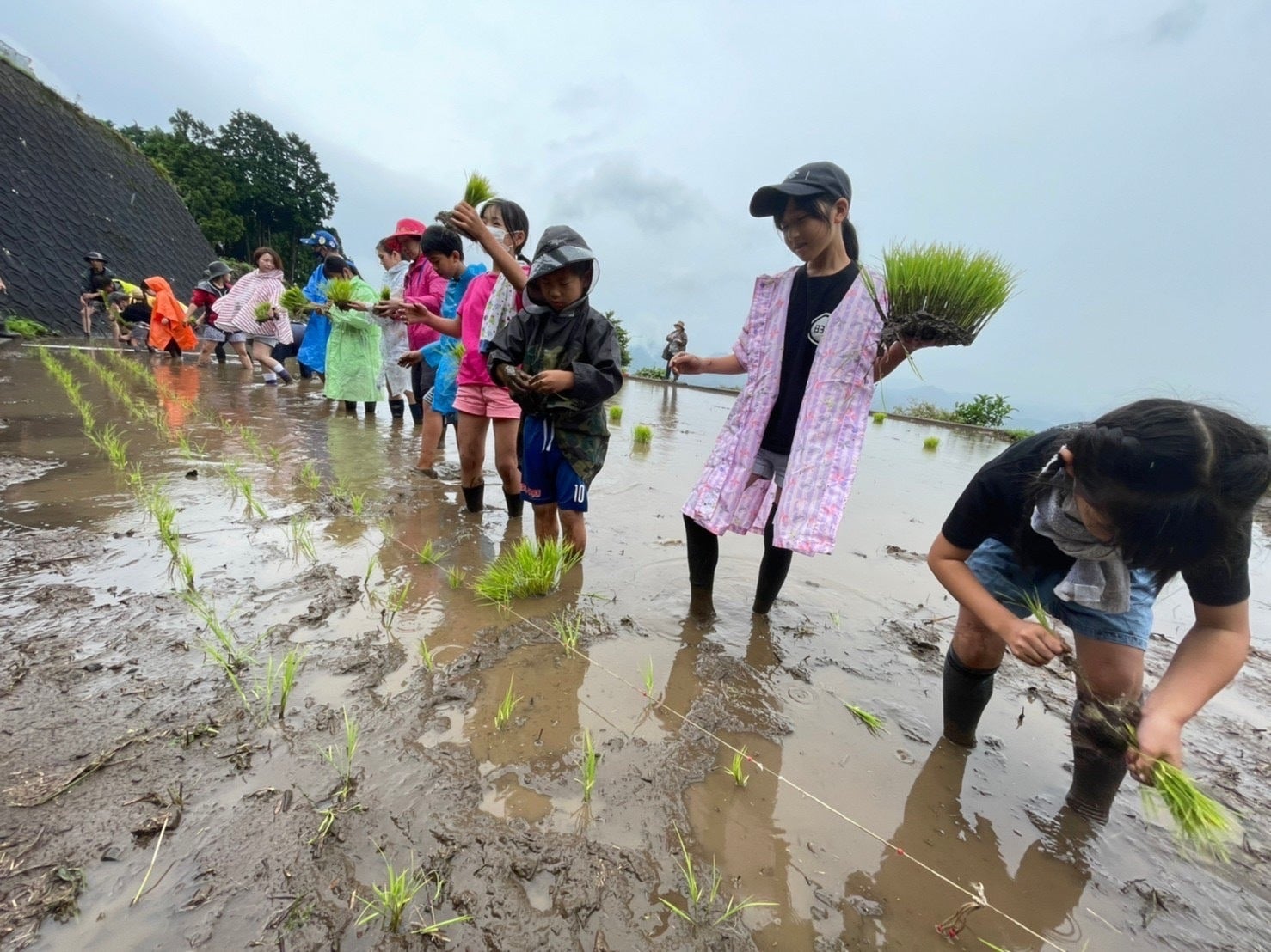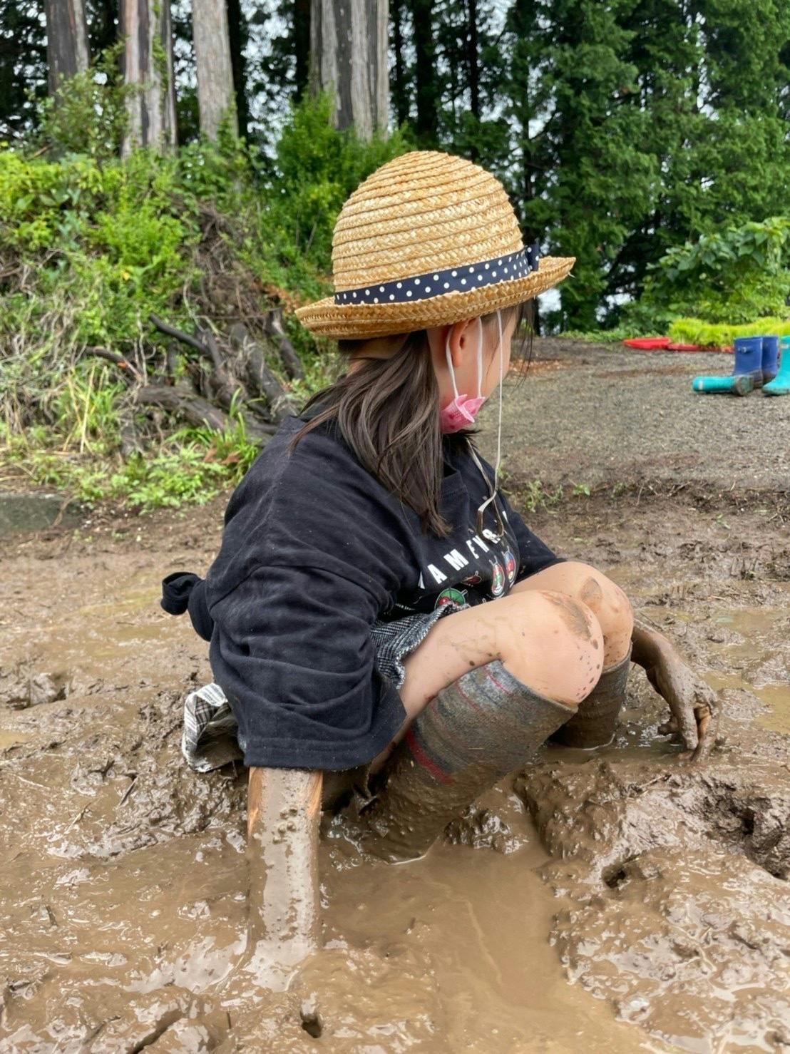 田植えもお洒落しておこないます。w 6月には大吉ファミリーを招いて手植え体験も行いました。
