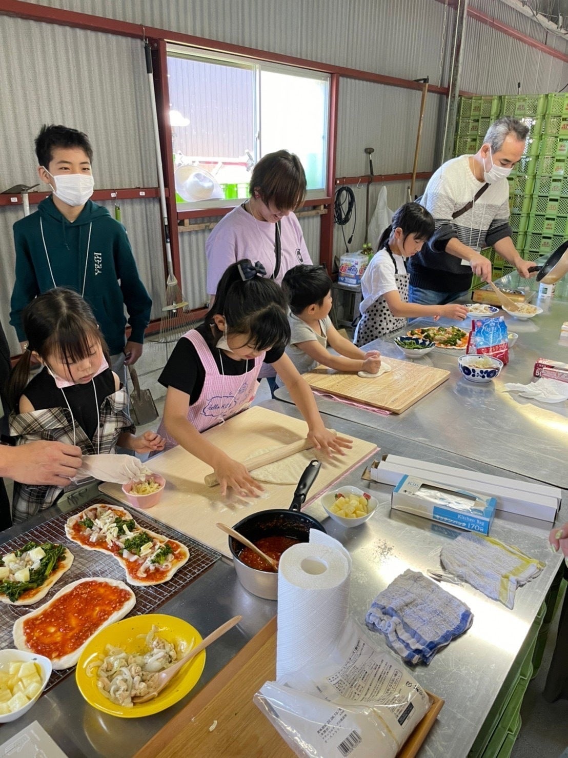 ピザ生地は小麦の調合にこだわり粉を自分たちで捏ねて作り、畑から新鮮な野菜を収穫してその場でトッピングします!!