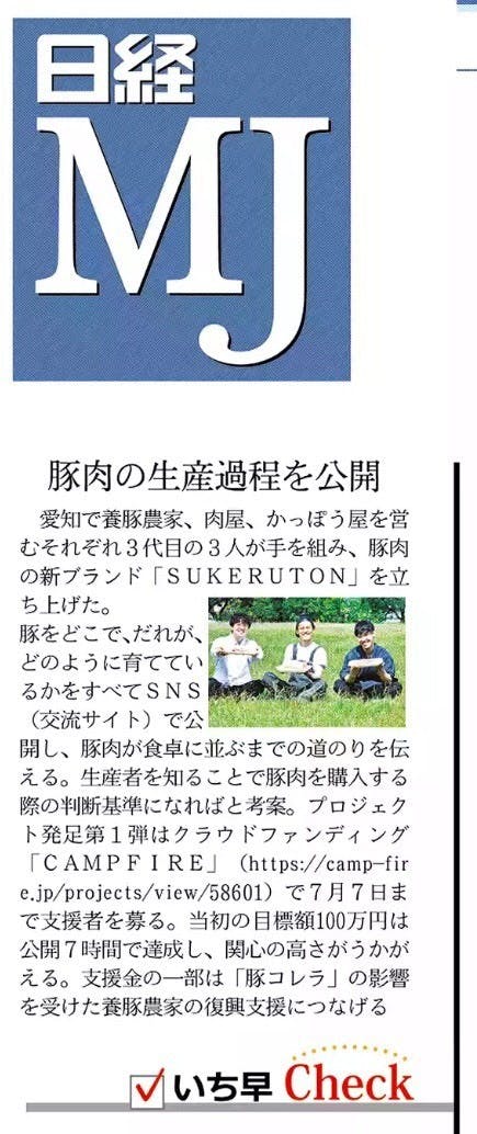そしてこの日経MJをきっかけにまだ世界一透明な豚肉プロジェクトを知らなかった方たちにも認知してもらいパトロンになって頂いたり、他の新聞社やテレビ局より取材の依頼がきております。