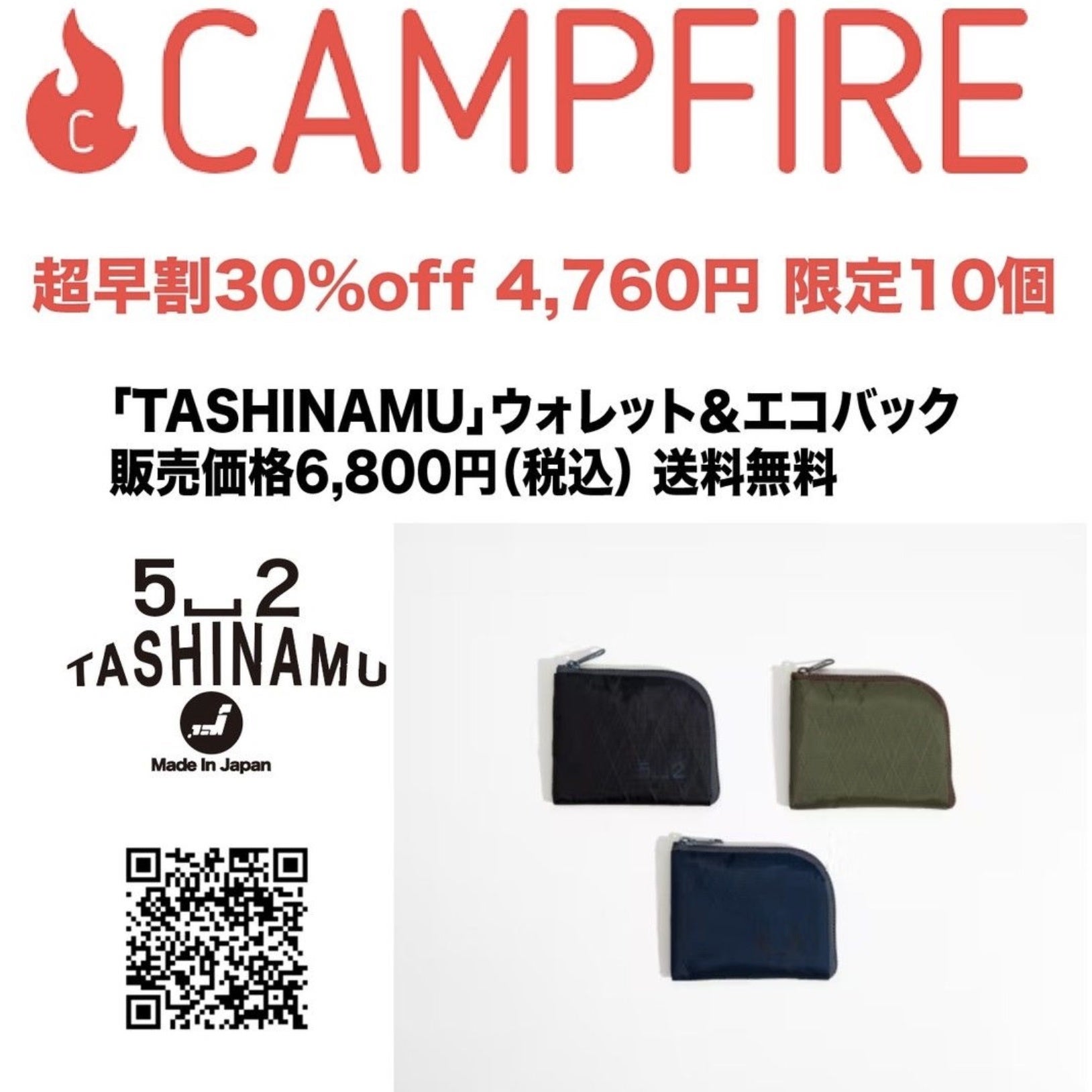 5秒で収納スマートエコバック付きコンパクトウォレットの決定版!【TASHINAMU】