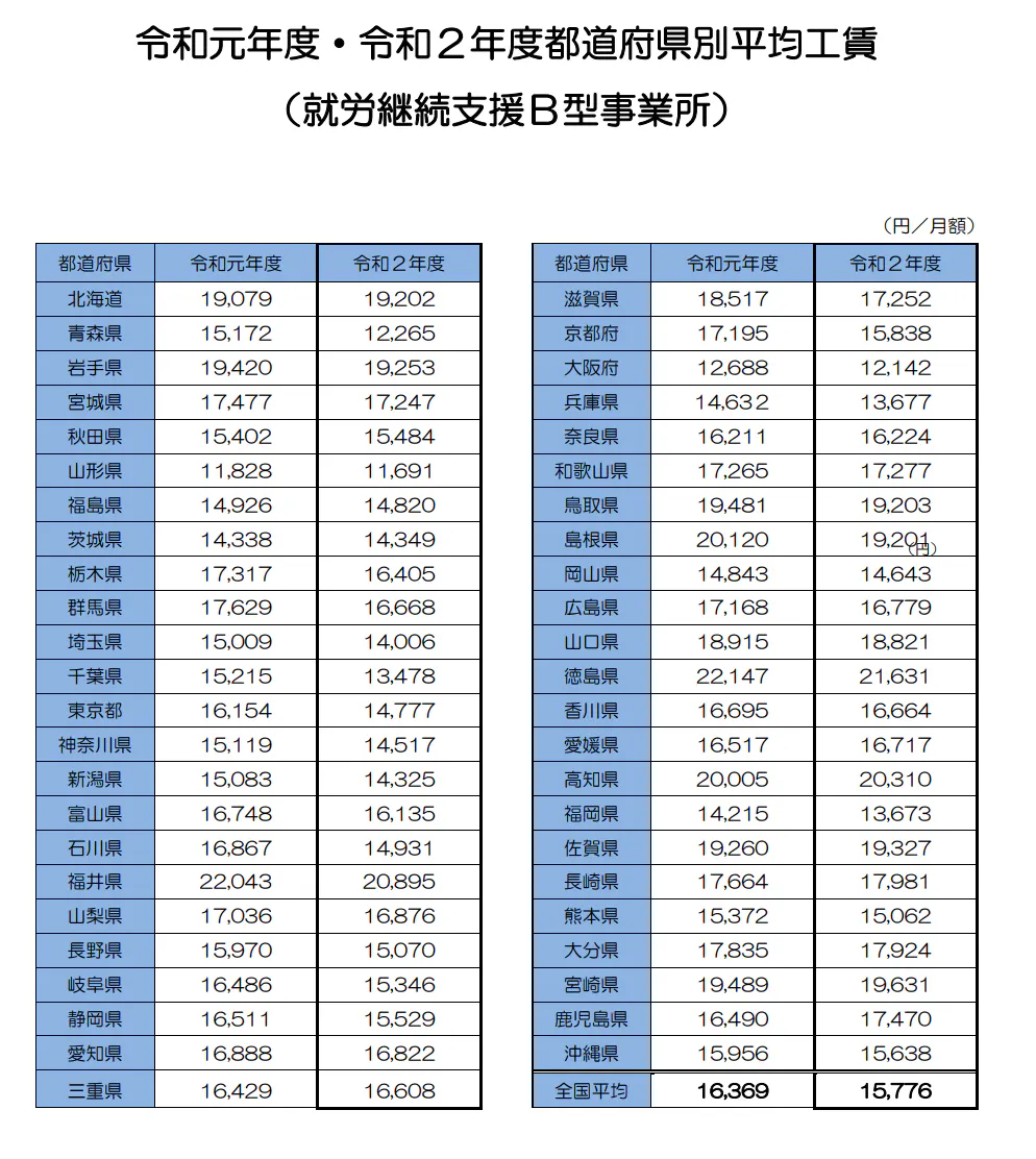就労支援と呼ばれる障がいを持つ人たちが通う施設の平均工賃をご存知ですか?