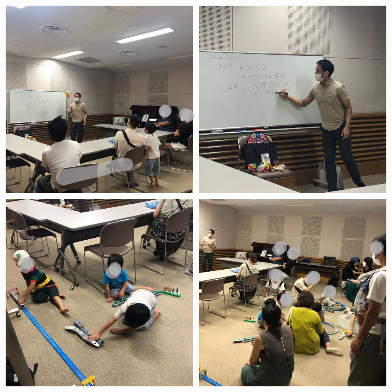現役スクールカウンセラーの臨床心理士:桜井先生が子育てについての講演もしてくれました。お子さんが遊んでる中でリラックスしながらも貴重なお話に親御さんも夢中でした。