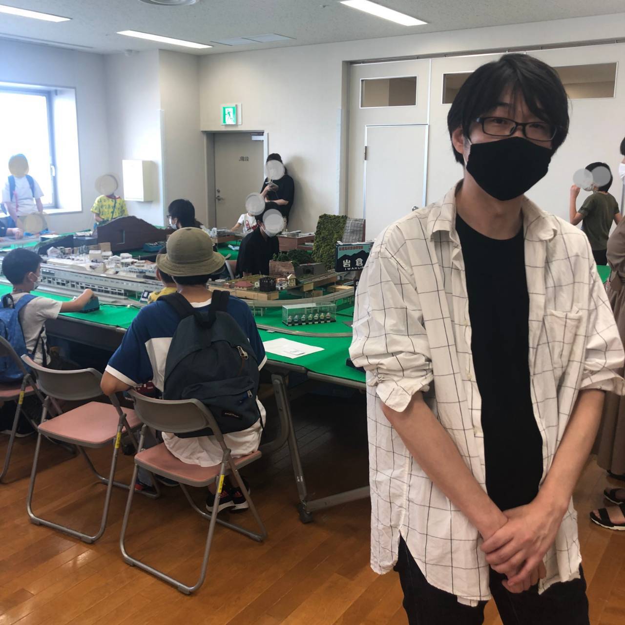 レイアウトを本物のように走る姿に子鉄達が夢中。親御さんも、高校生のお兄さんお姉さんを将来の我が子に重ねて微笑ましい表情をされていました。