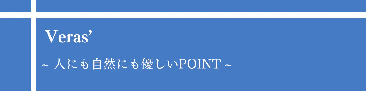 「Veras’」は、SDGsにいち早く着目し、「我々の地球はひとつのみ」をコンセプトに環境を最大限配慮し、リサイクル資源の再生利用に力を入れています。