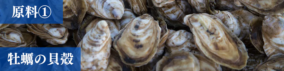 港の漁師から牡蠣の貝殻を回収し、約1,000℃の高温で加熱させたのち、粉砕・研磨をし、粉末状へ加工します。