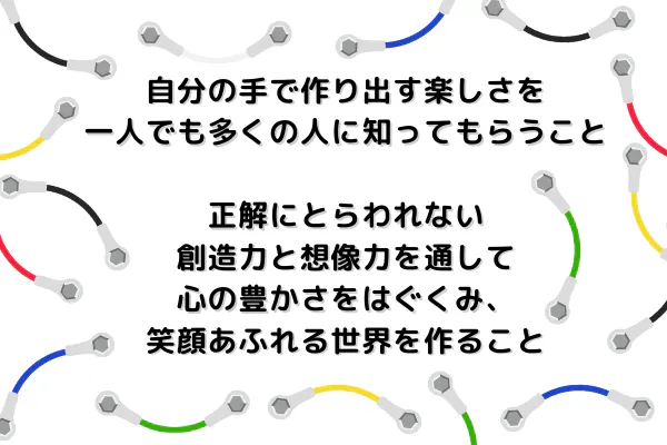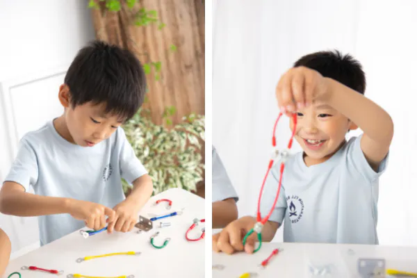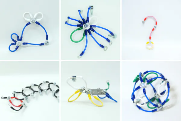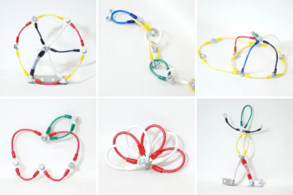 立体や平面ではなく線を組み合わせるため、できあがりがイメージしにくいという特徴があります。作ってみよう!試してみよう!という気持ちを後押しします。