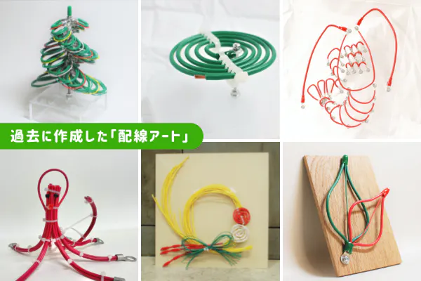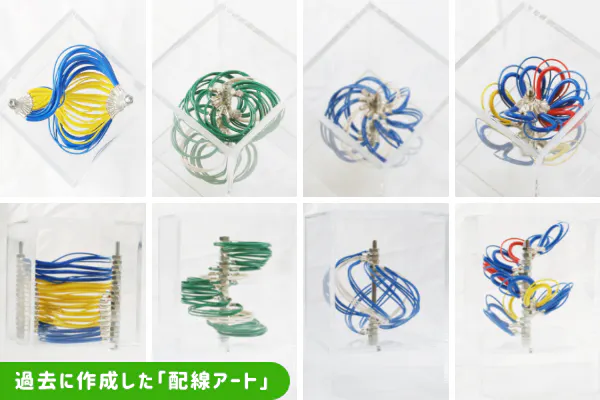 そこで、一足飛びに製造業や制御盤に興味を持ってもらう方法を考えるよりも、何か間をつなぐソリューションを作りたい、とずっと考えていました。過去には、「配線アート」「ハイセンスハイセン」という名前で、仕事の休憩中に自由な発想で様々な作品をつくりました。