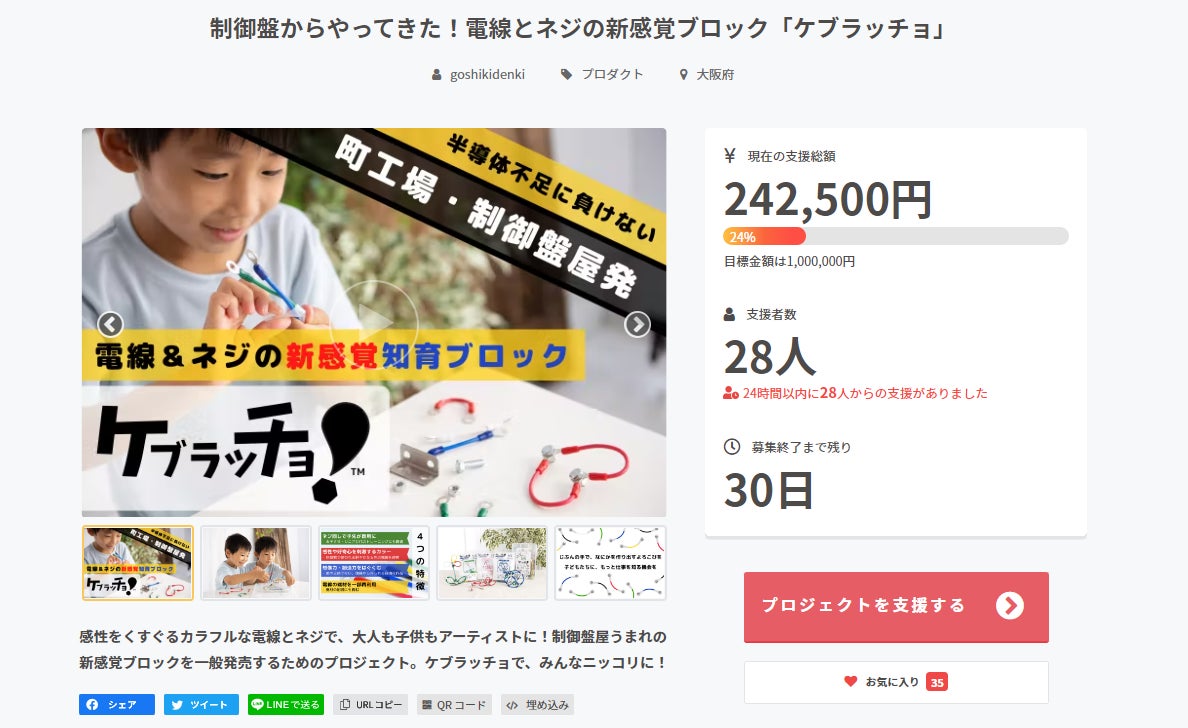 昨日5/30 20時、豊中の制御盤屋、五色電機(株)によるクラウドファンディングがスタートしました!ケブラッチョの一般販売に先駆けて、ケブラッチョをより多くの人に知っていただくために立ち上げたプロジェクトです。