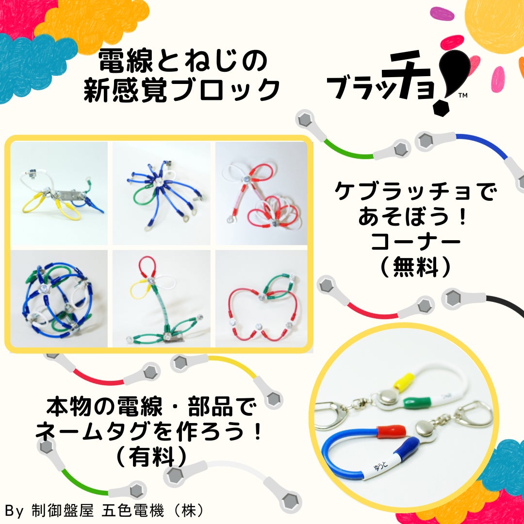 ケブラッチョを自由に触って遊べるコーナー(無料)と、ワンコインでネームタグを作れるワークショップ(有料)を開催予定です。