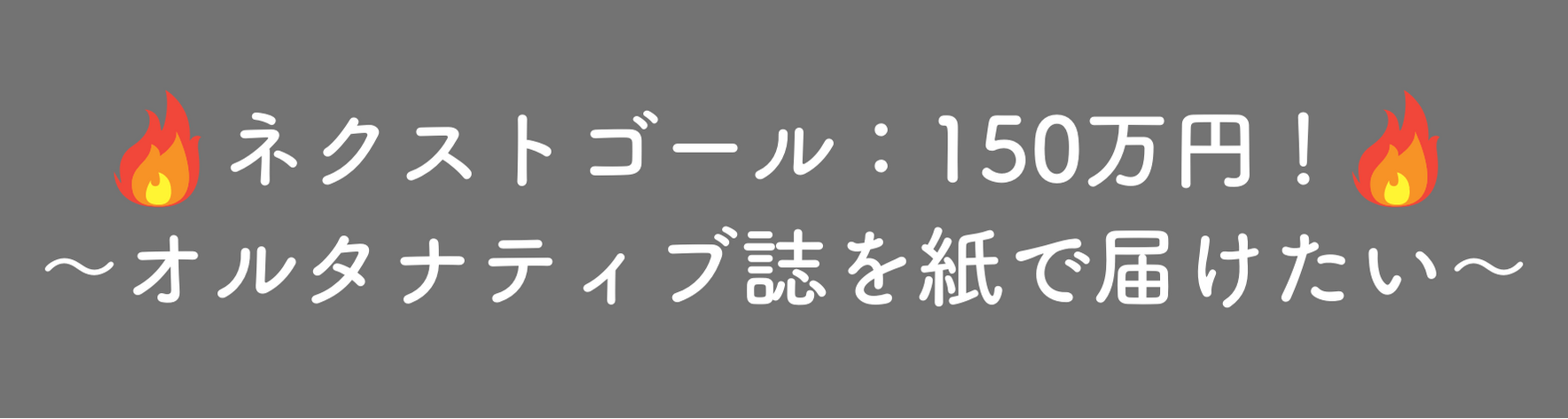 はじめまして!居場所と旅とアートについて、体験を通して学び、議論して共有するユニット「Localisession[ローカライセッション]」です。みなさまのあたたかい応援と支援で、なんと3日でプロジェクトの目標を達成できました。公開までは「誰が応援してくれるんだろう」と不安でいっぱいでしたが、多くの方に共感いただけて、本当に嬉しいです。そこでプロジェクトのネクストゴール(次なる目標)は「オルタナティブ誌を紙で届けたい!」にすえていきたいと思います。たくさんの方々から応援頂くたびに「やっぱりPDFではなく、紙で届けてほしい」というお声をいただきました。紙でお届けするために、目標金額も150万円にすえ、新たなスタートを切っていきます。