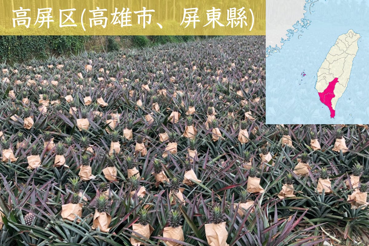 台湾国内でパイナップル生産ナンバーワンの高屏区(高雄市、屏東縣)で5,148ヘクタールに渡り栽培されており、全台湾の43.6%を占めています。