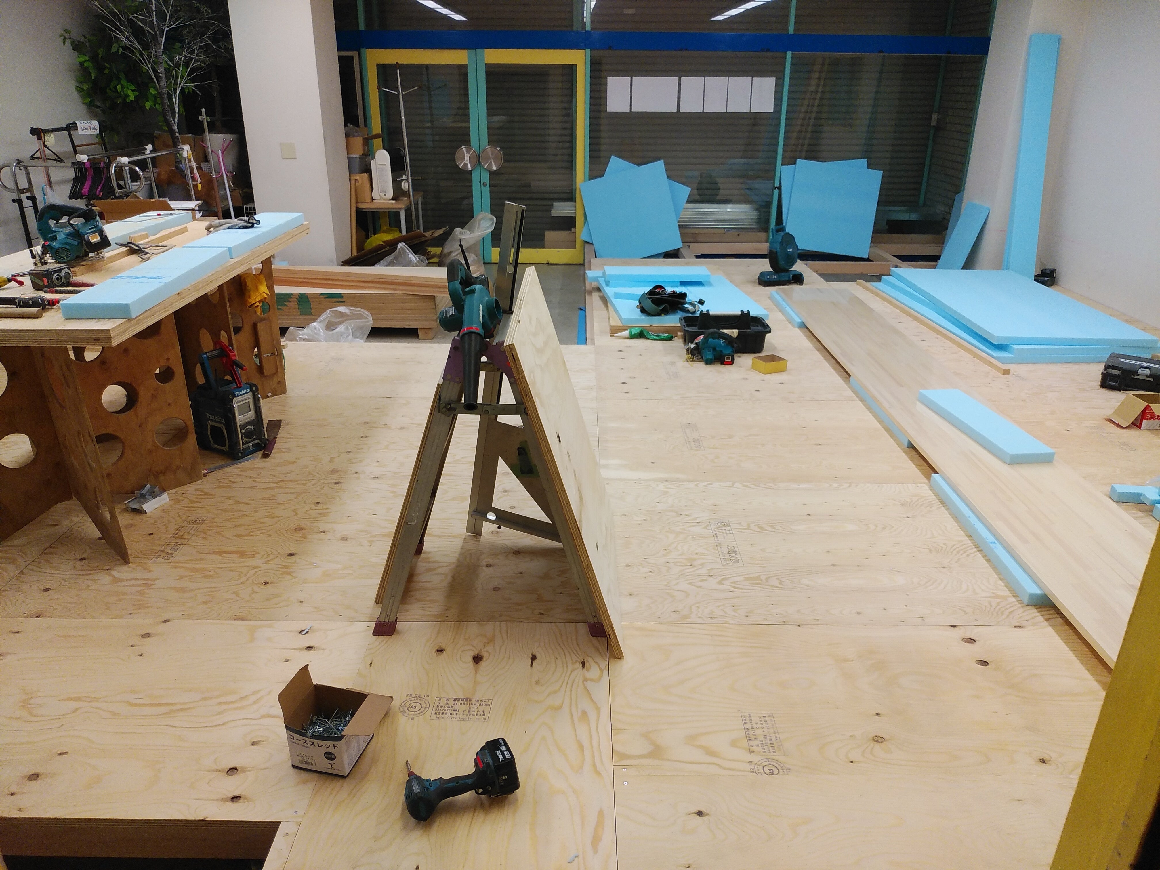 更にこの上に床材とフローリング材を張りますが、どんな色のフローリングにするか検討中です。