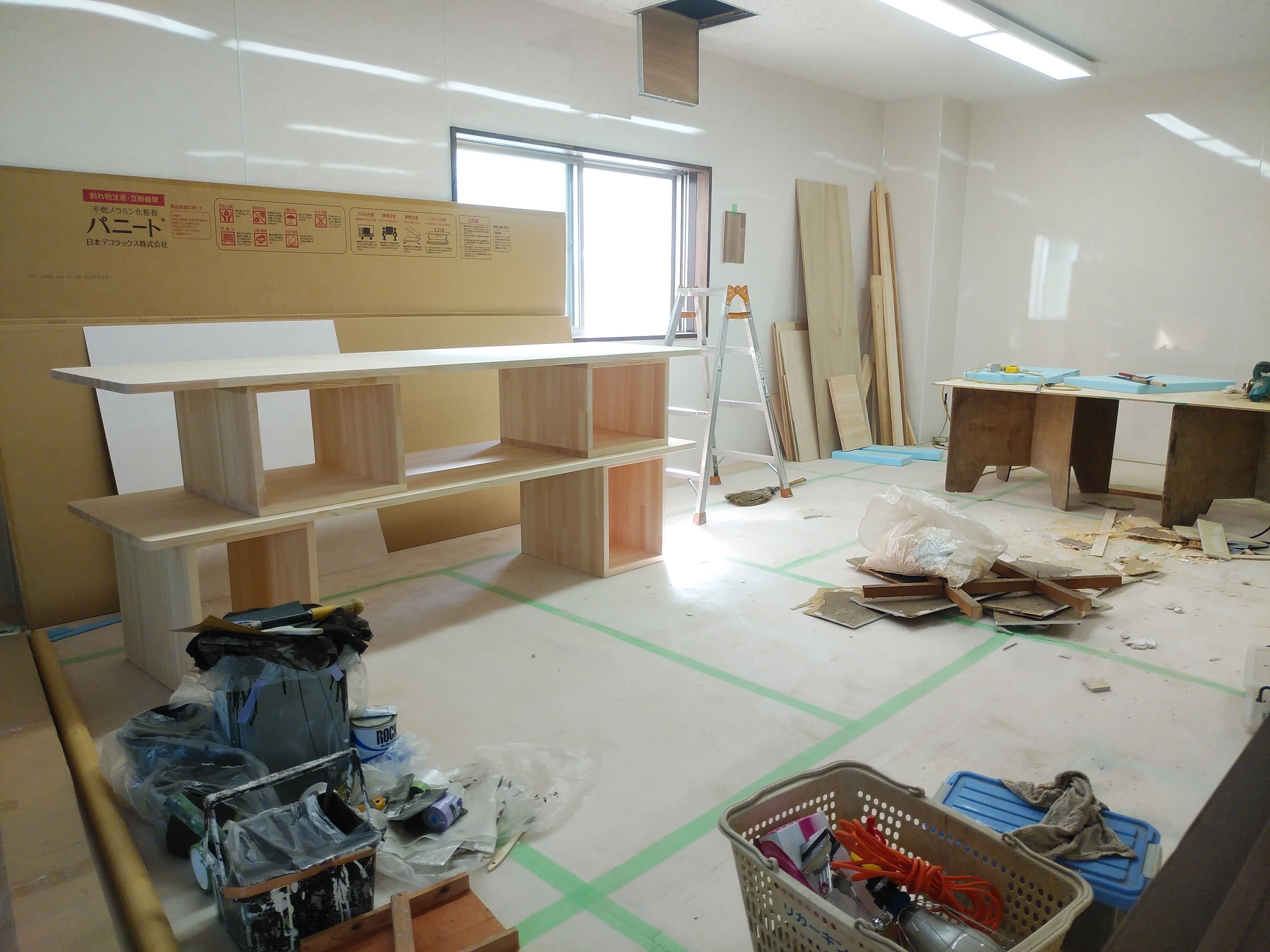 空調機器が届く間に、大工さんが4つの四角い箱を作ってくれました。