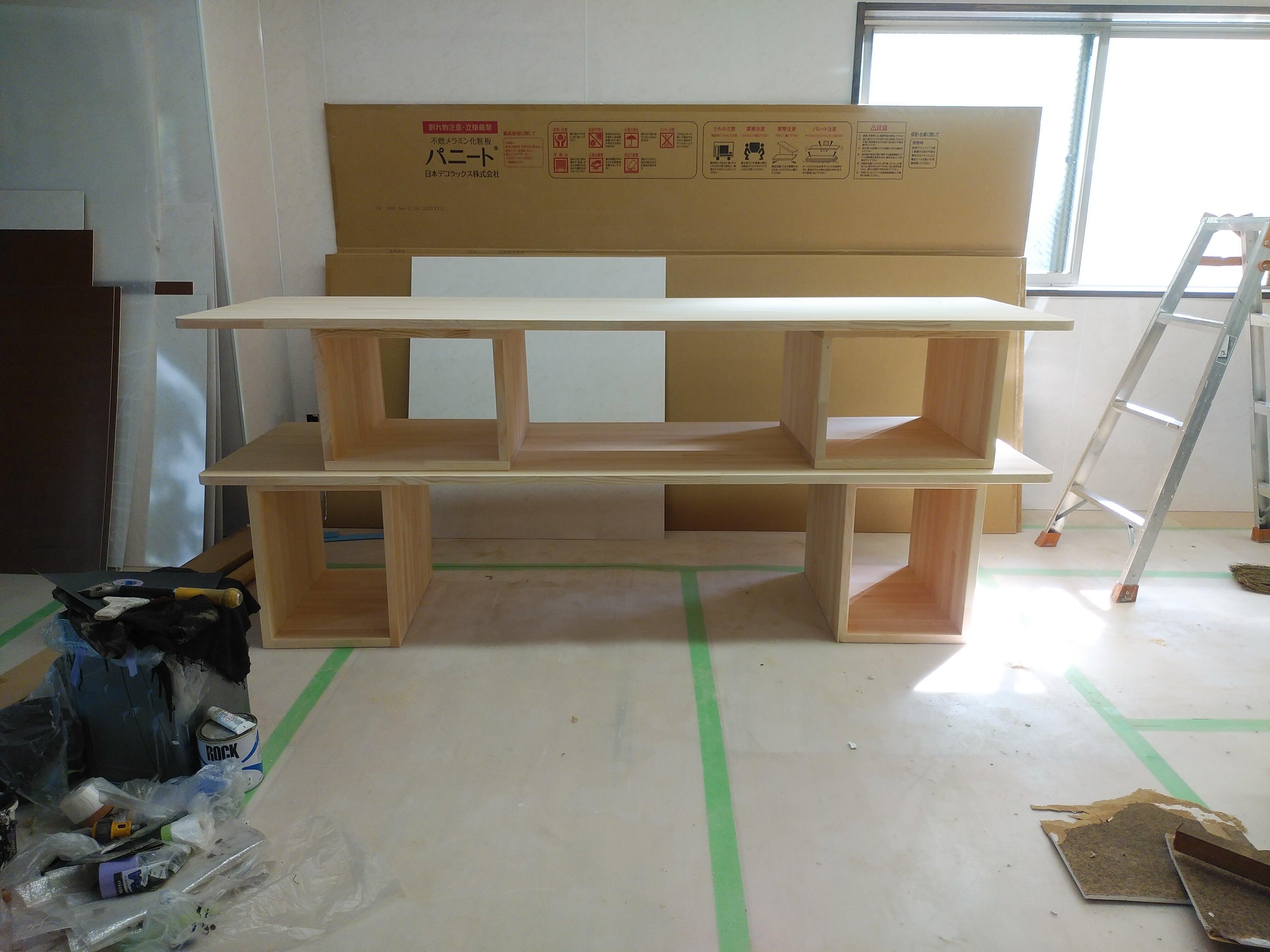 箱と天板を組み合わせて棚になったりテーブルにしたりといろいろな用途に使う事ができます。