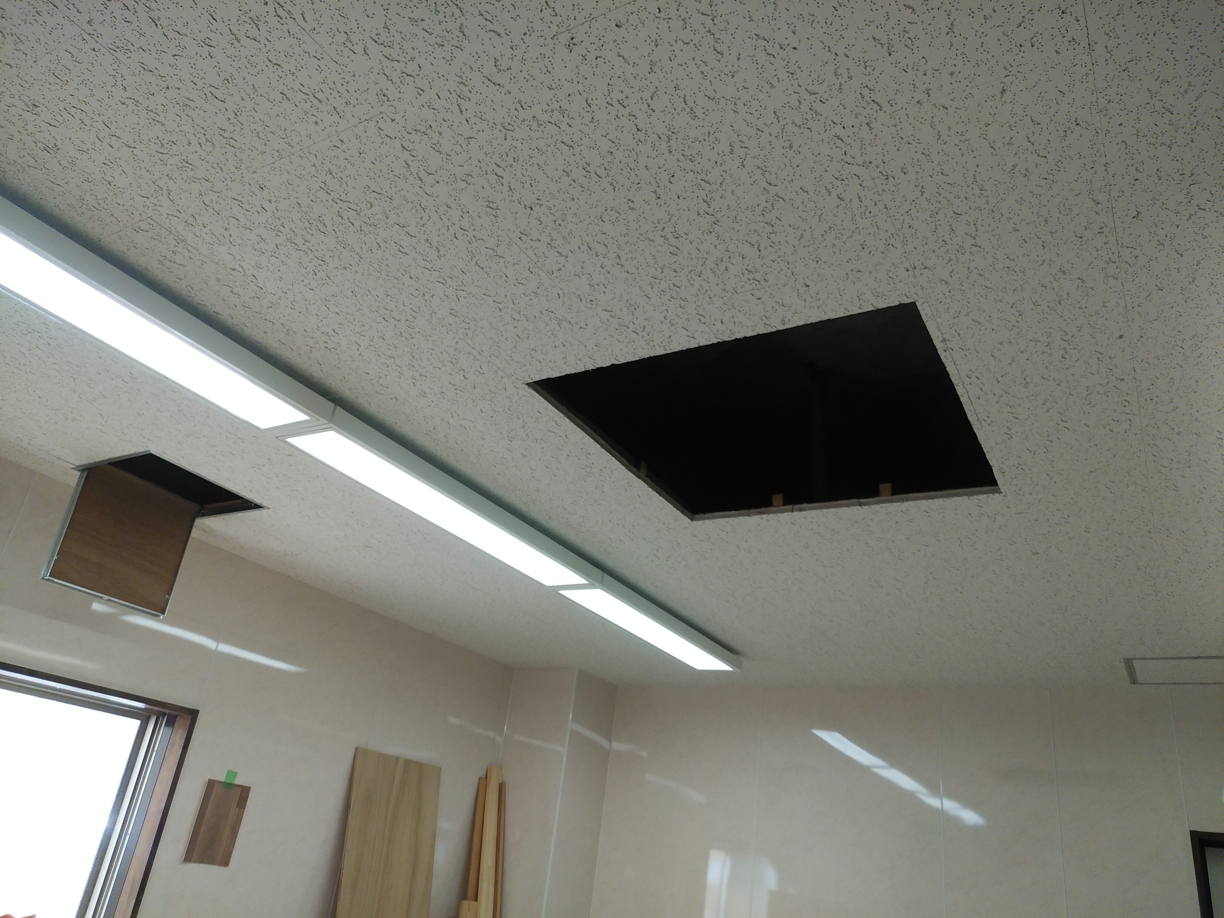 とうとう空調機器の納品日程が決まり、据付位置の天井が切り取られました。