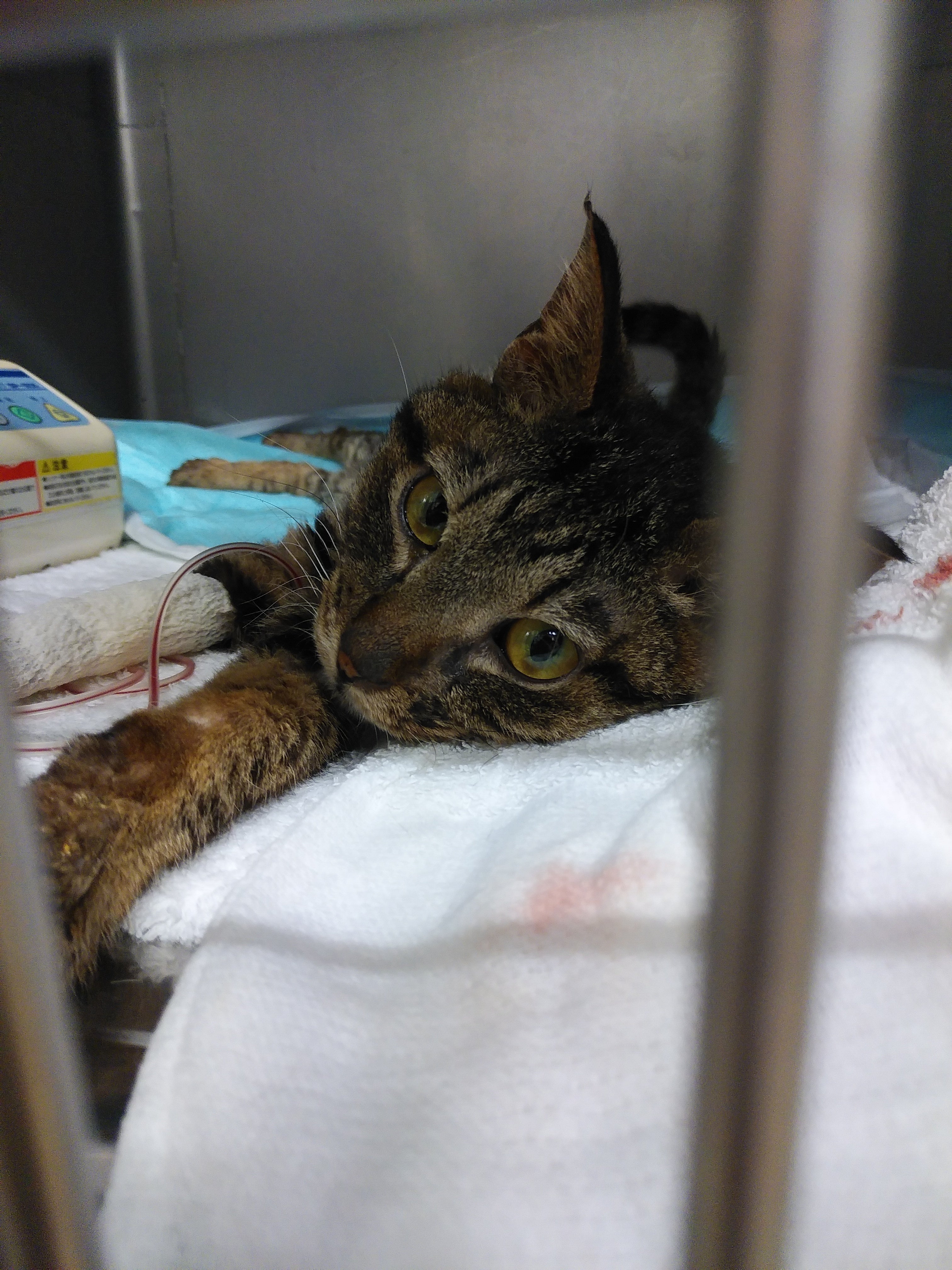 午前中に病院に連れていき血液型のクロスチェックをして、午後からトラ君に輸血が開始されました。