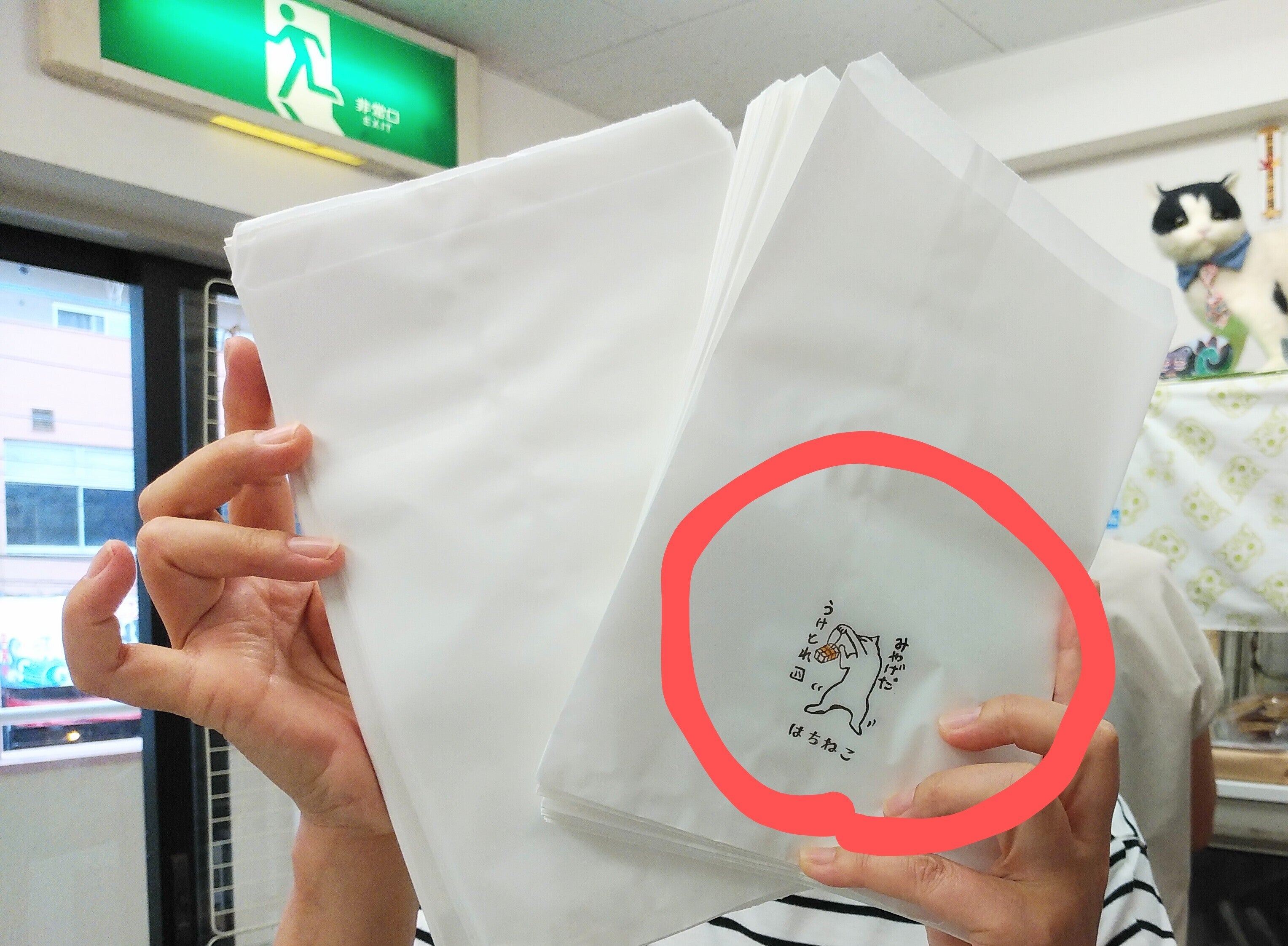 スタッフのもんがらさんが、紙袋一枚づつにはちねこスタンプ(*^-^*)