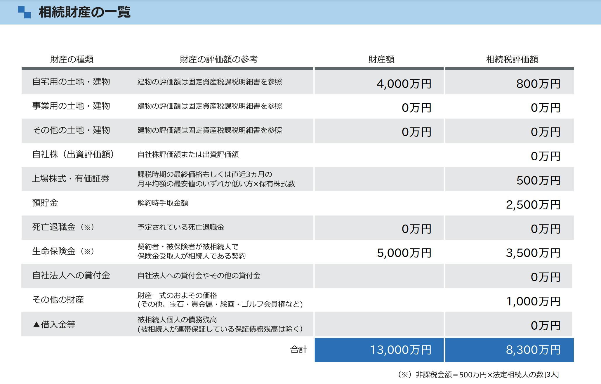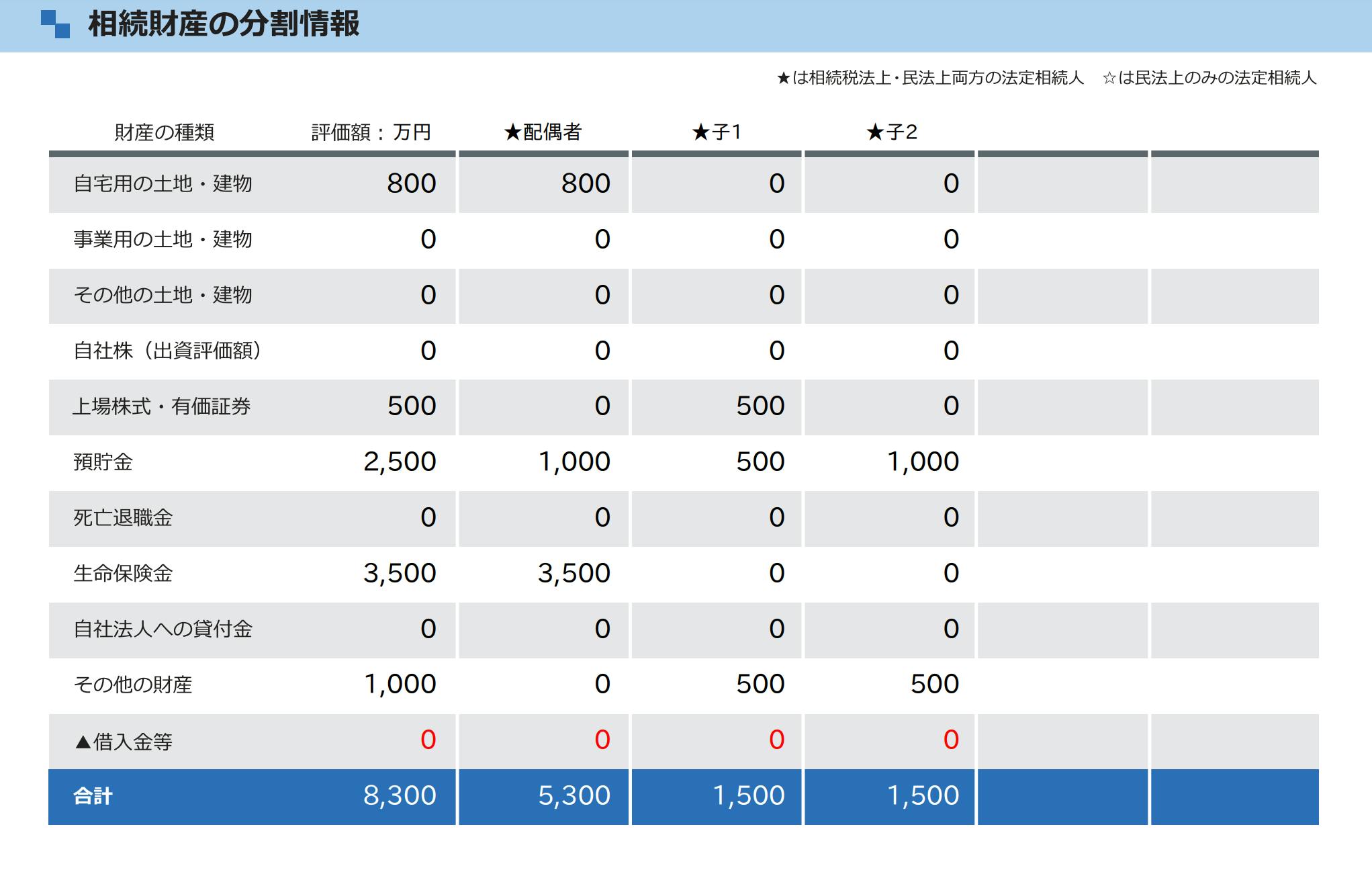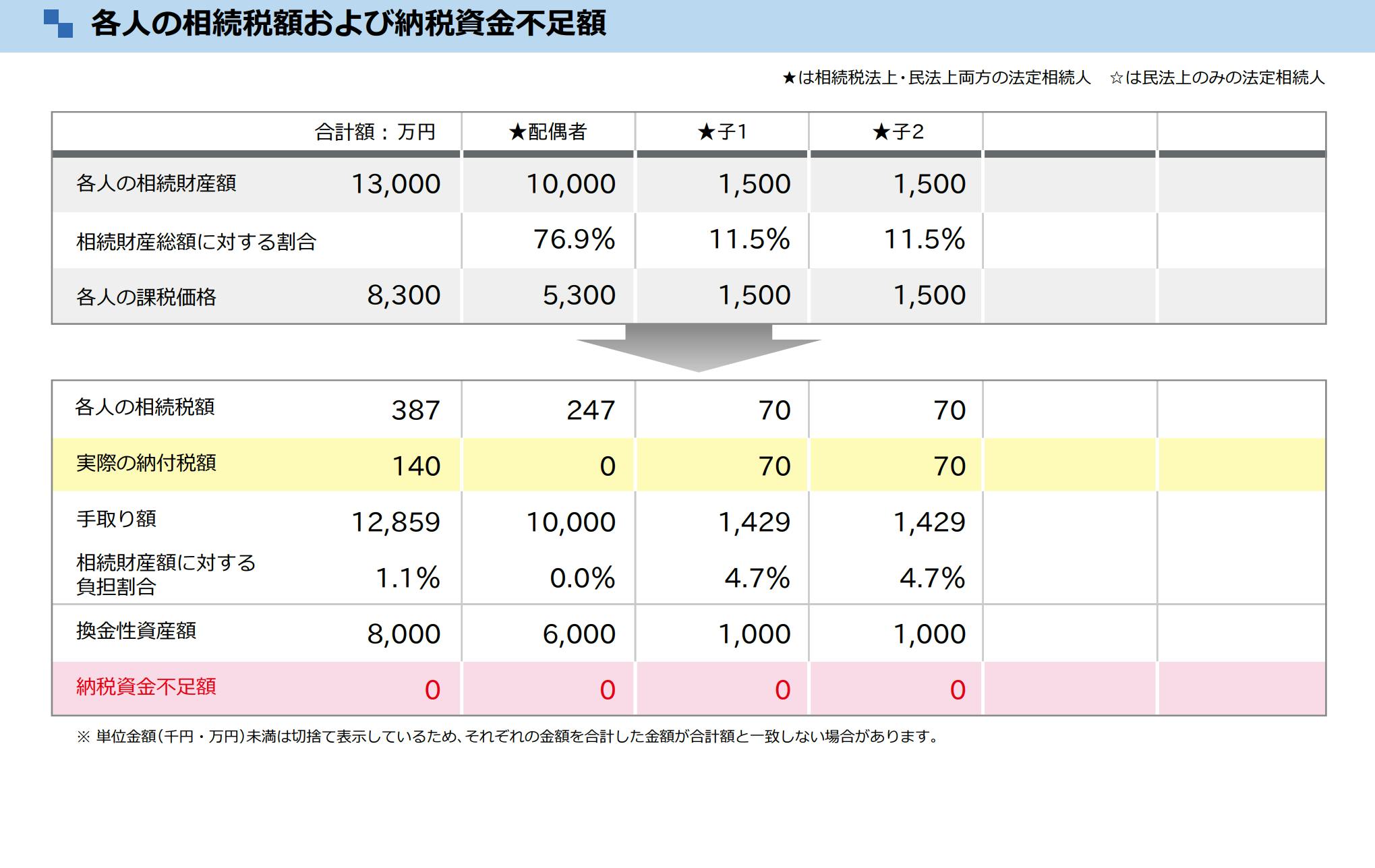 シュミレーションの結果、各人の相続税の納税額等を知ることができます。