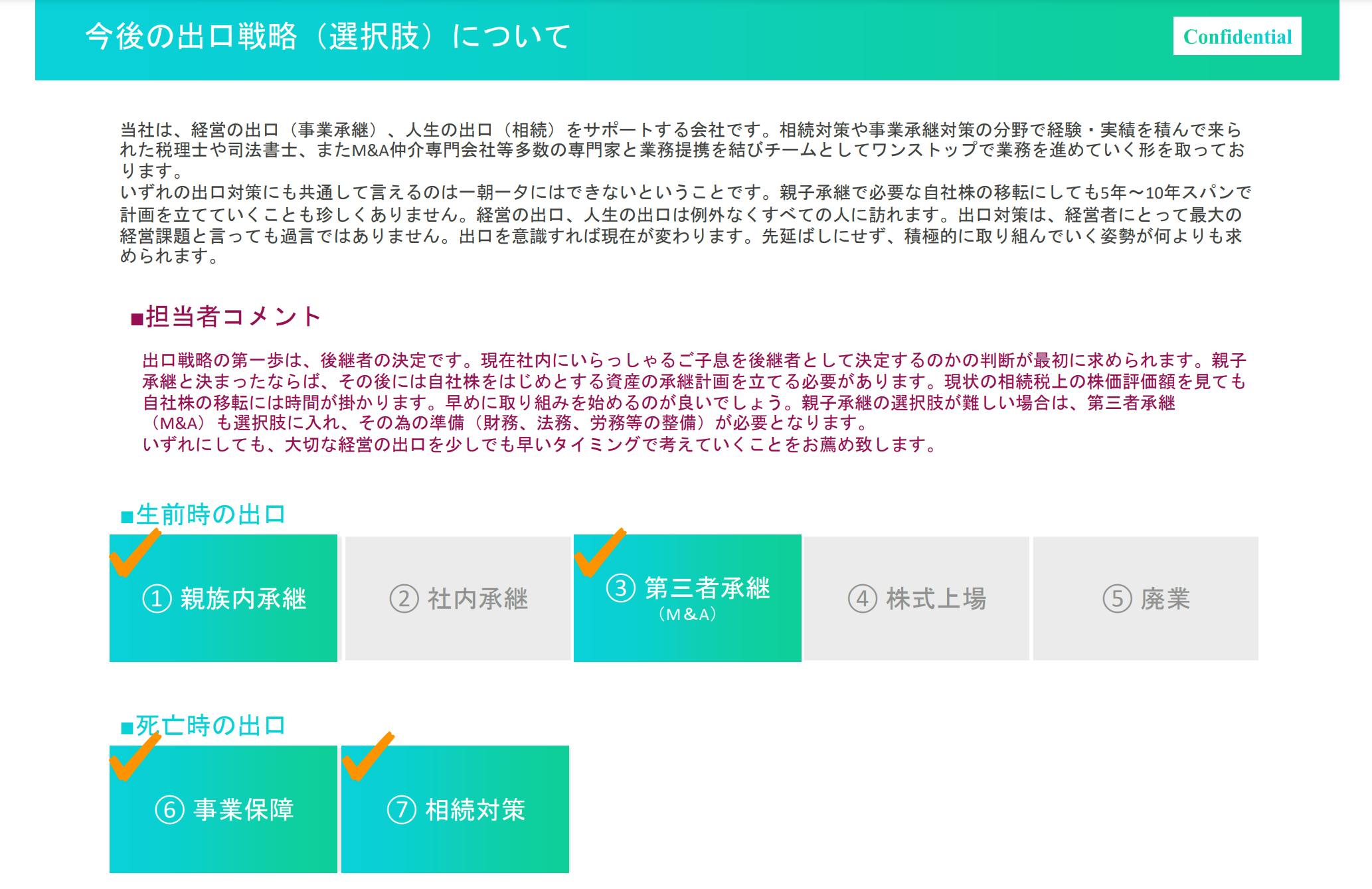 まずは経営者自身が事業承継についての考えを整理する為に、この企業評価診断書をご活用いただければと思っています。そして一人でも多くの経営者の事業承継のゴールが明確になり積極的な対策が進むことを目指したいと考えています。