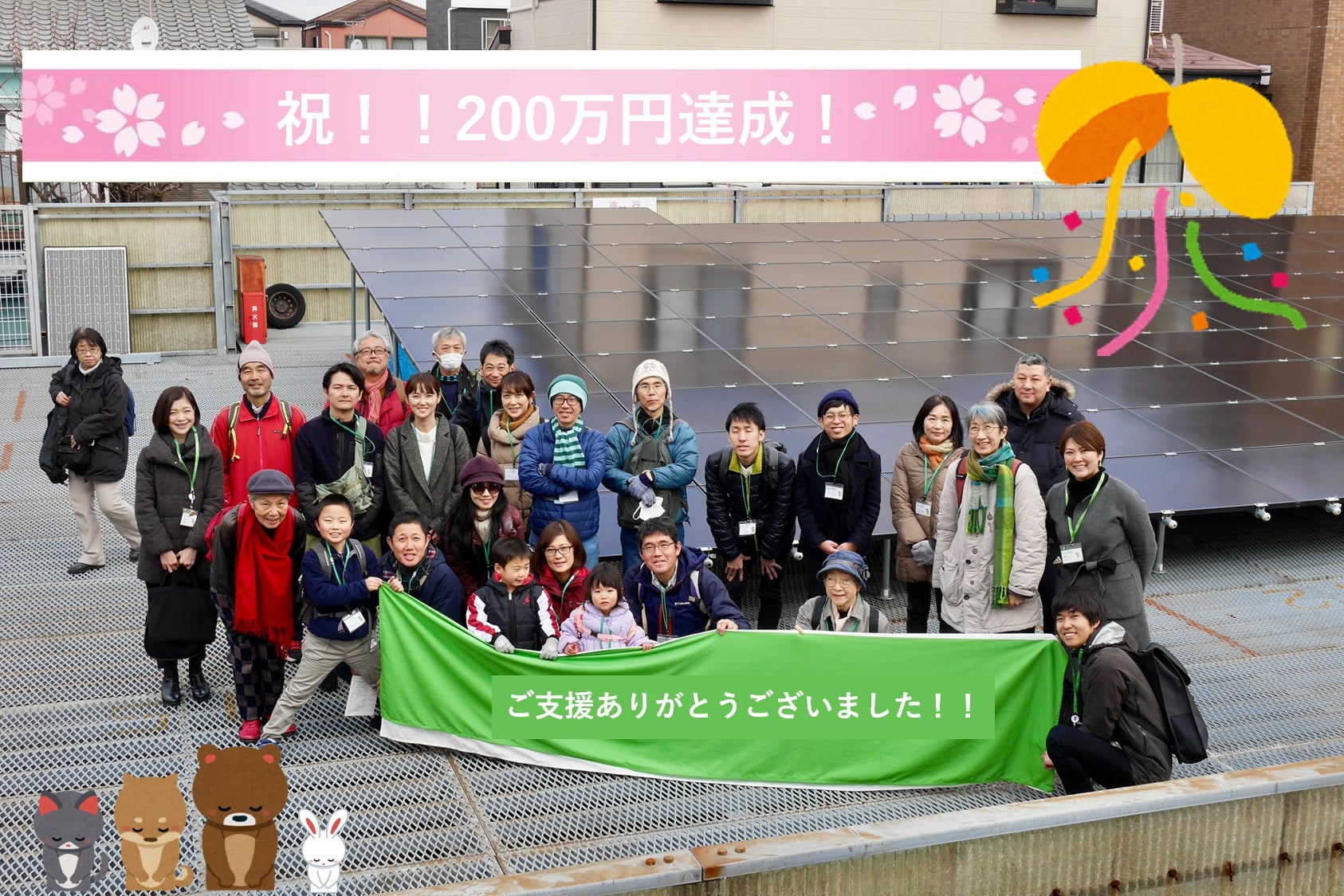 最終日の残り1時間を切るあたりで、見事目標の200万円を突破!最終的には102%、約205万円でフィニッシュしました。ご支援いただいた203人の皆さん、本当にありがとうございました。