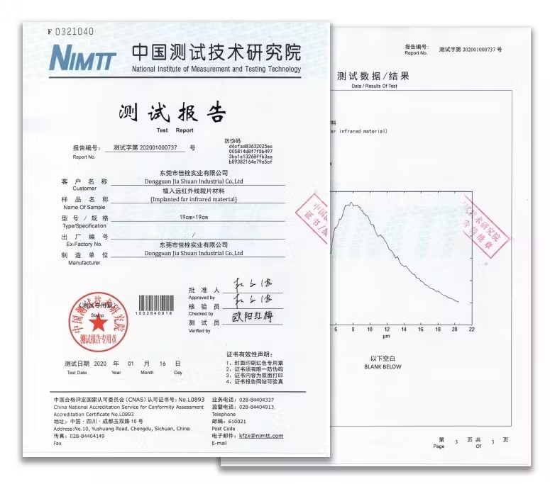 国立測定試験技術研究所(NIMTT)による遠⾚外線検査結果