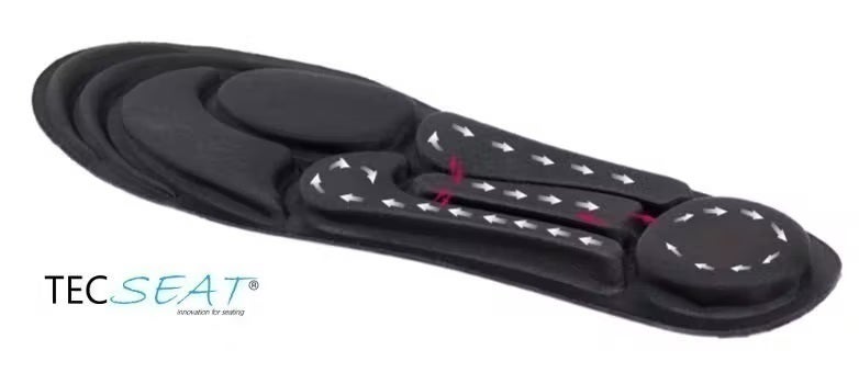 TECSEAT Soft Air Walkは独自の3層構造で優れたクッション性と対流式浅溝設計で高い通気性を備え、熱のこもり、蒸れ、臭いを防ぎます。