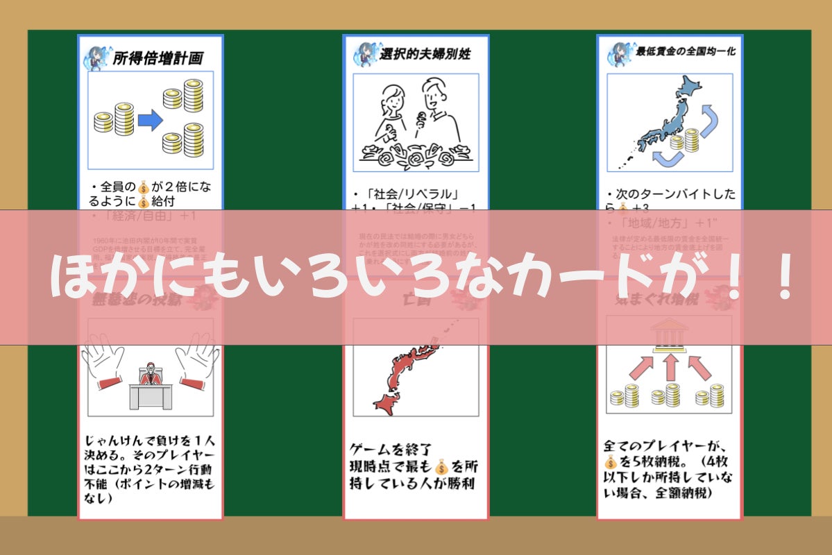 そうした想いから今回、主権者教育の出前授業を実践してきたノウハウを活かし、子どもや若者同士で(もちろん大人同士でも!)楽しく遊びながら政治・選挙について学べるカードゲームの製作を進めることにしました!