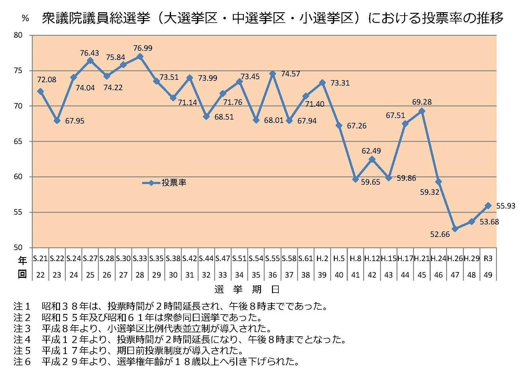 例えば2021年の衆院選の投票率は55.93%!
