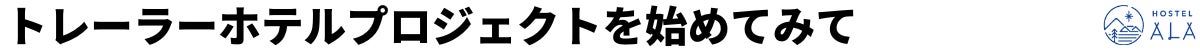そんな悩みを抱えていた私達に、いつも応援してくださっている町民の方から、使わなくなったトレーラーのお声がけがありました。見に行ってみるとびっくり!使っていないのがもったいないくらい素敵なトレーラーが、そこにはありました。私達は思いました。「トレーラーハウスで泊まれたら、ホステルALAの完全プライベートルームとして利用できるんじゃないか」