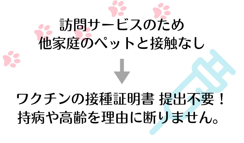 当店は訪問サービスですので、他のお家のペットとの接触がありません。