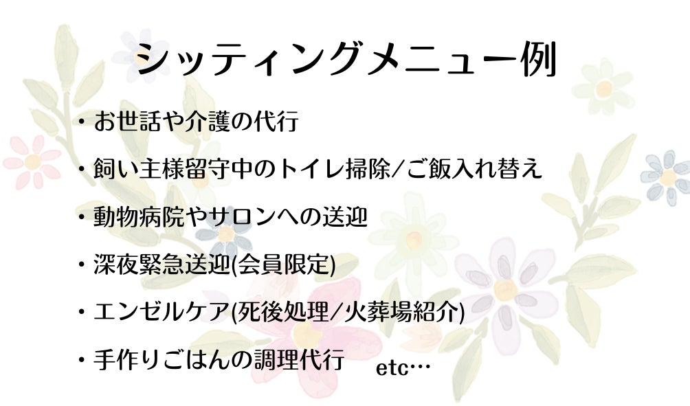 また、たとえば「お散歩・お世話代行」のメニューもご利用いただければ、