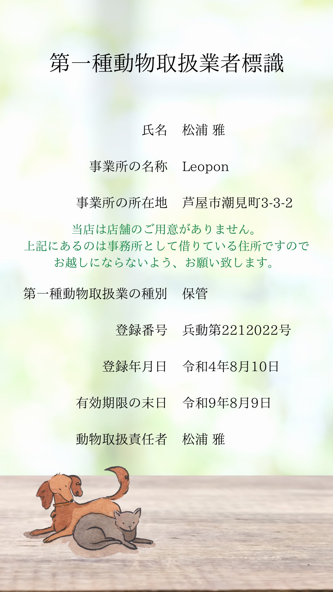 第一種動物取扱業 標識