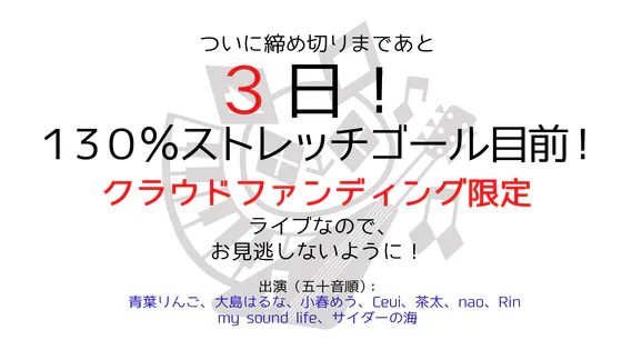 本日もプロジェクトトップページにカウントダウン動画をアップしましたので、ぜひチェックしてください。
