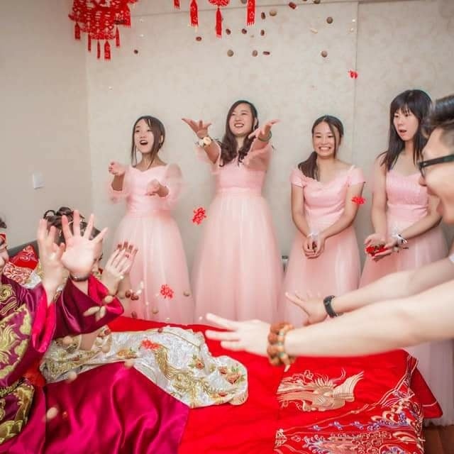 さあ、結婚式当日。朝の4時半に起き、準備です。もうこの時間から近所の方々が新婦側の家で餃子を作っていました。この餃子がすごく美味しかった。ドレスを着たり、お部屋をデコレーションし、新郎側がやってくるのを待ちます。