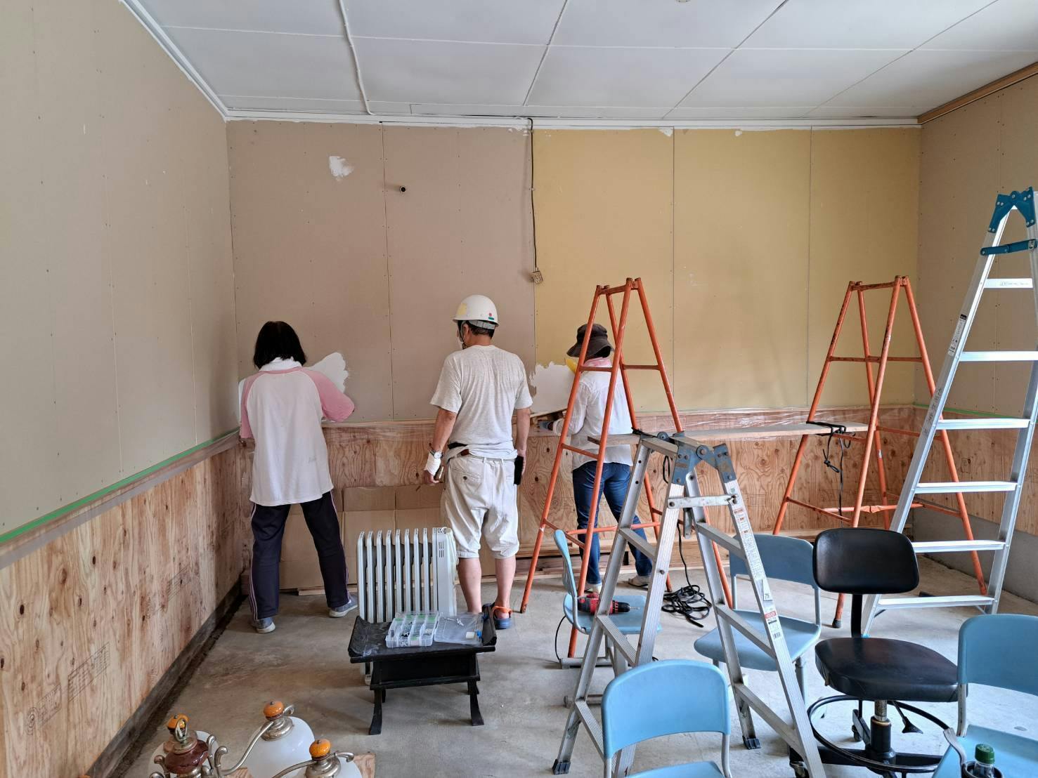 私は仕事だったので、仕事おわりに交流スペースに行くとかなり壁塗り進んでいました!