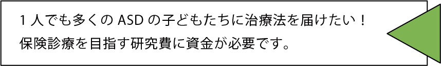 今回はASDと診断されたお子様に、できるだけ早く安心して誰もが受けられる治療となるように、研究活動を進めるためクラウドファンディングを立ち上げました。