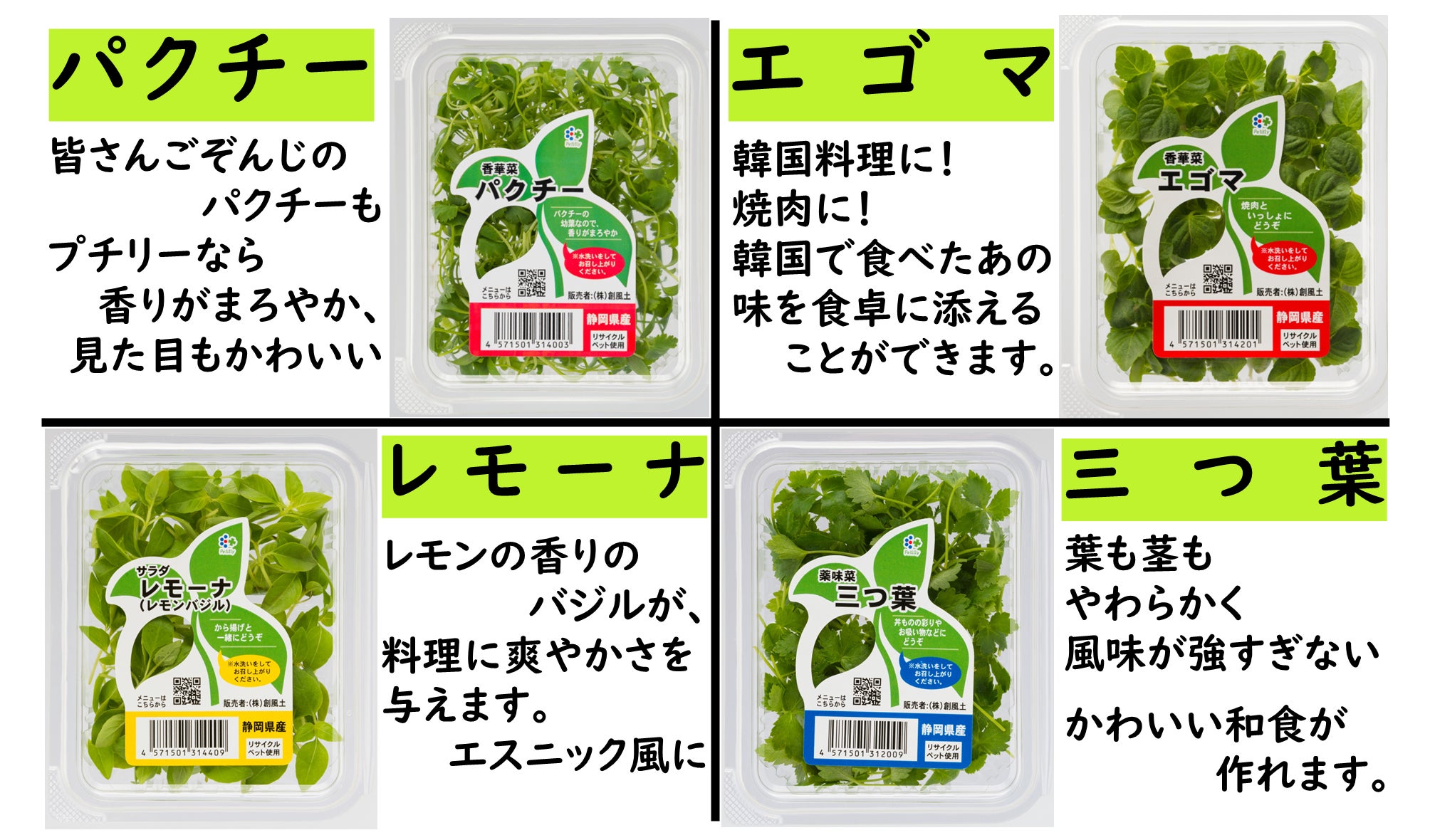 また、プチリーにすると淡い味になることから従来あまり生で食べなかった、味の濃い葉物野菜でもおいしく食べられるようになるため、いろいろな野菜をプチリー化することで今までなかった全く新しいレシピ提案が可能となります。