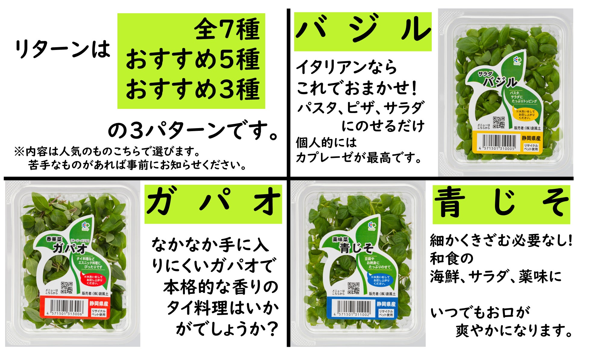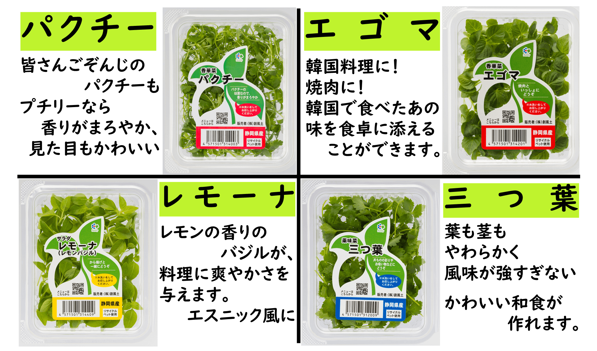 食卓の彩りにご活用ください。こちらはすべて静岡県産です。